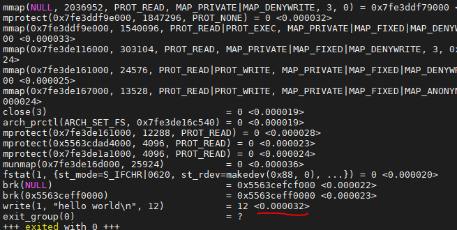 "hello world\n" 문자 처리에 32 microsecond 가 걸렸음을 알 수 있다.