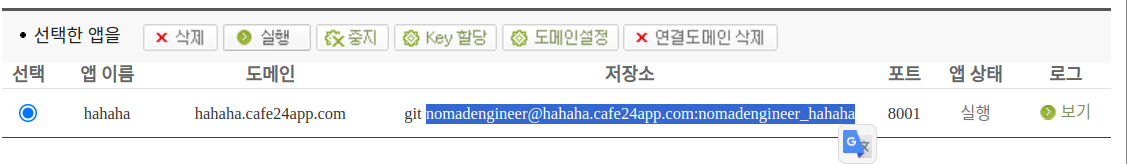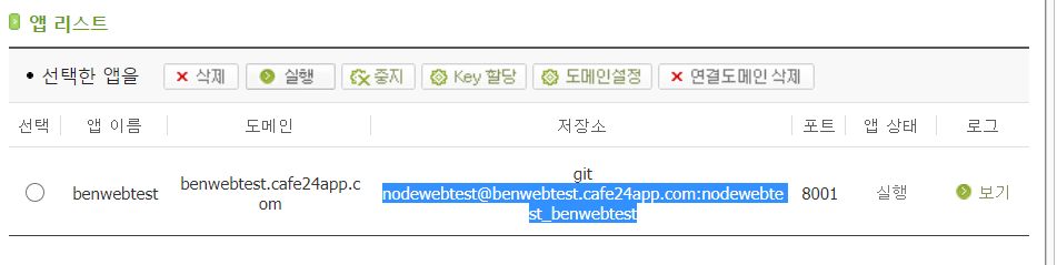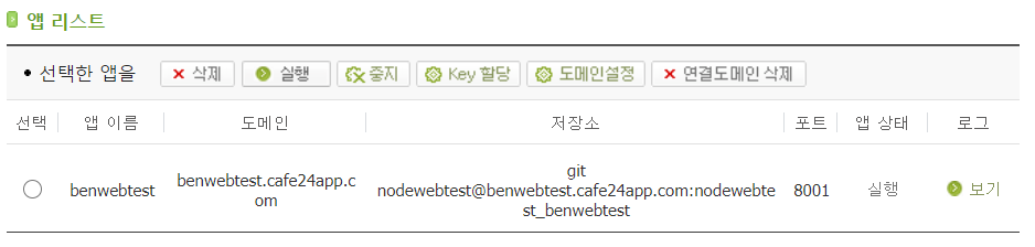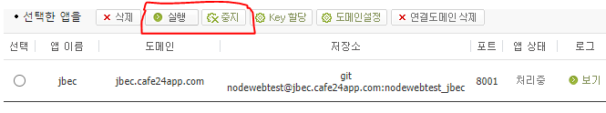 뭔가 설정에 변경이 있을 경우, cafe24 에 가서 app읠 중지하고 재 실행 주어야 정상 적으로 적용 되는 것을 확인 했습니다.
