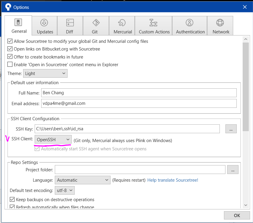 Sourcetree 에, SSH Key 를 등록해 줍니다. 이번에는 Private Key 를 등록해야 합니다.