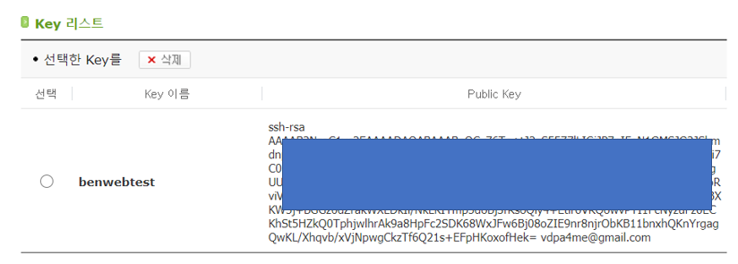 Key 가 아래와 같이 등록 되었습니다.