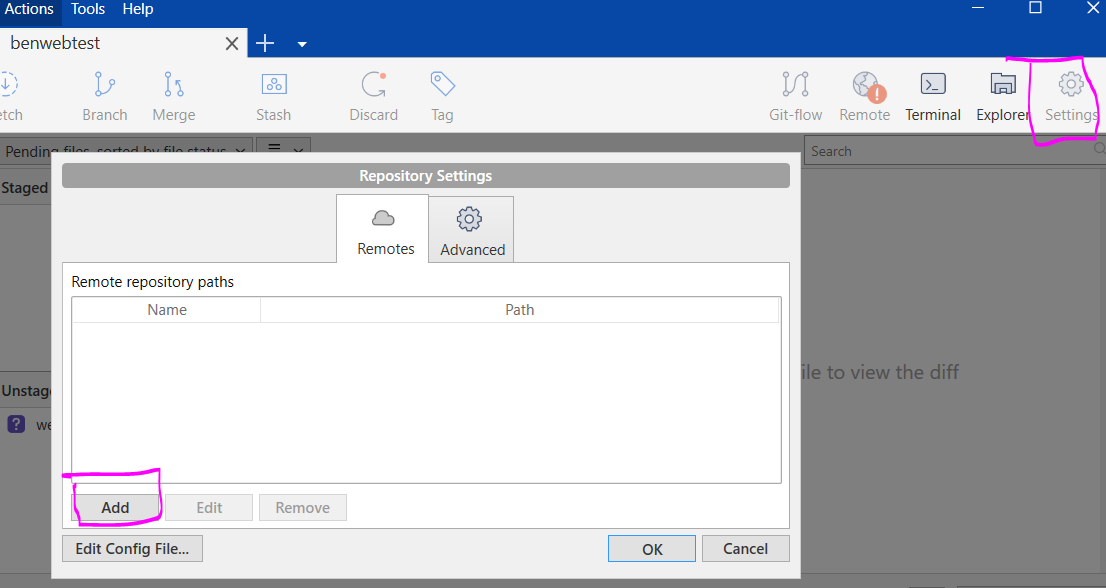 6. git commit -m "test"