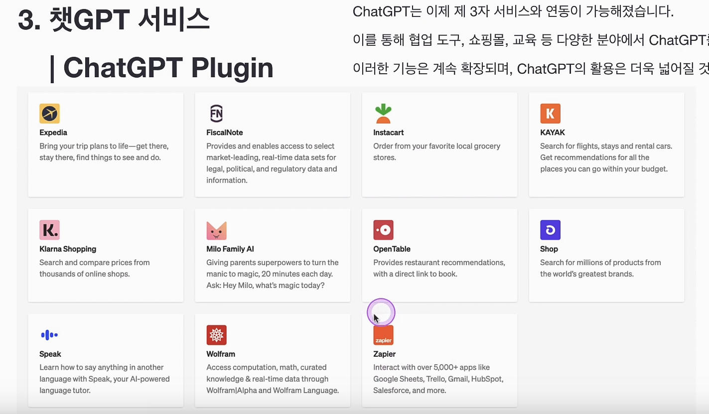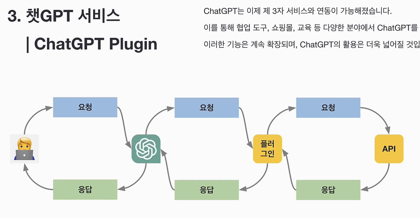 ChatGPT가 Plugin 을 통해 다른 서비스를 호출하고 그의 응답을 받아 User에게 전달하는 기능을 말한다.