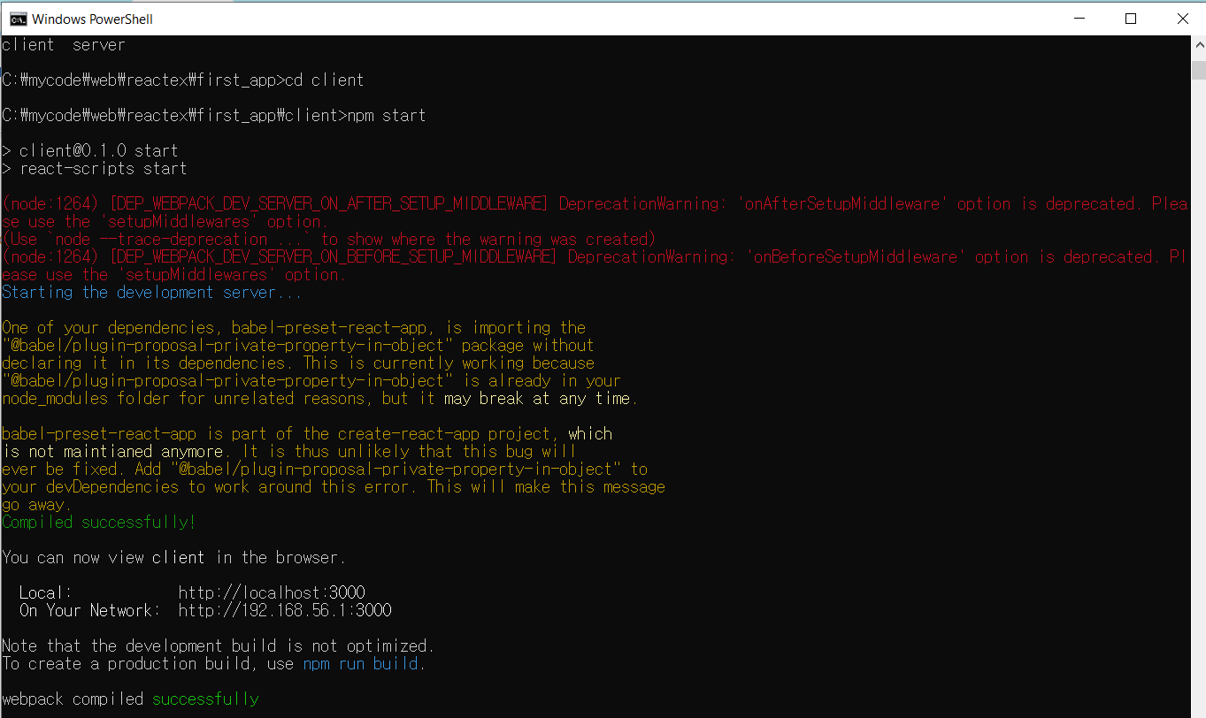 - 'npx create-react-app client' 명령으로 react 설치