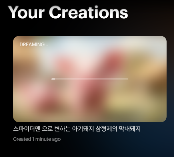 4. "스파이더맨 으로 변하는 아기돼지 삼형제의 막내돼지" 라고 입력해 보았습니다.