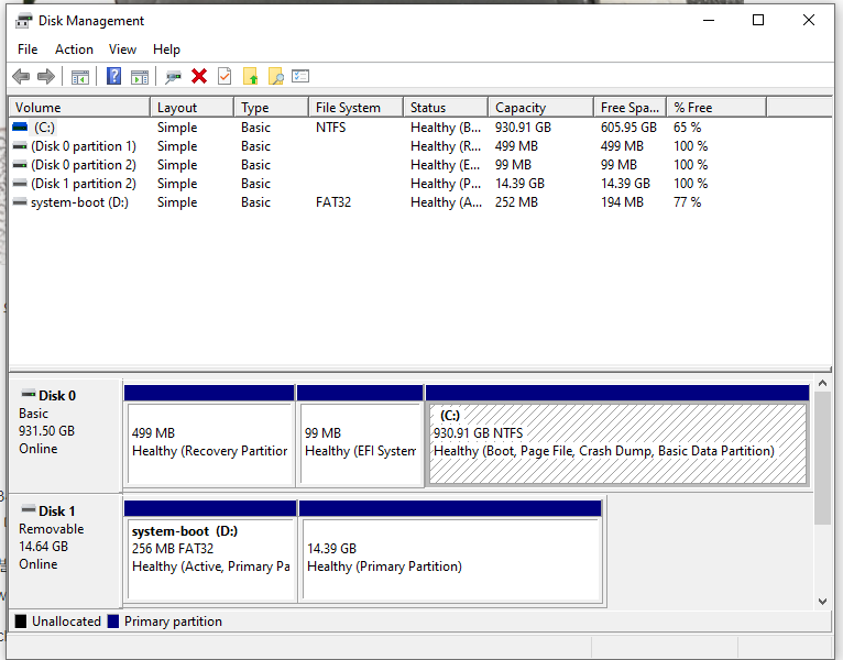 Windows OS에 의해 SD가 인식이 잘 안될 때는, "Disk Management" 를 열어서 SD 카드를 찾으면 됨 (윈도우에서 "파티션" 으로 검색하면 시작할 수 있음)