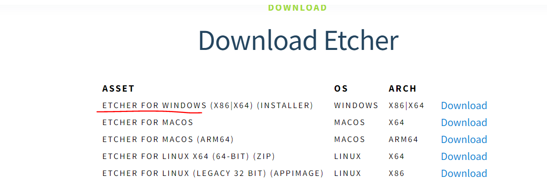 ETCHER을 사용하여 "sd-blob-b01.img" 를 SD 카드에 flashing. 우선 아래 site에 접속하여 Etcher 다운로드