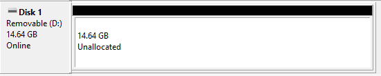위의 경우 SD 카드는 16GB 짜리이고, 2개의 파티션으로 나뉘어 있는 상태임. 두군데다 볼륨을 삭제해 버리면 아래와 같이 됨