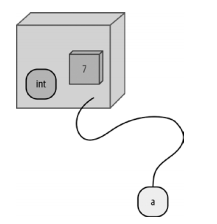 * 값 7은 이름이 없는 새 정수 객체에 할당된다.