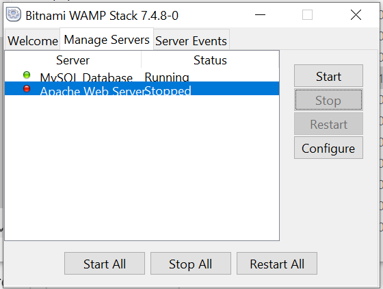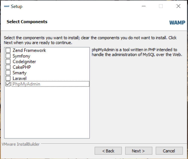 - install bitnami WAMP - DB만 사용할 것이므로, PhpMyAdmin 만 설치 함