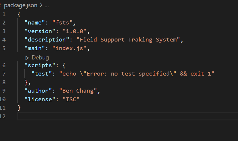 4. terminal 에서 npm init 이라서 치고, 기본 정보들에 대해 입력하면, 아래 처럼 package.json 이 자동으로 생김