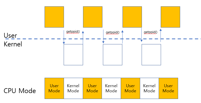 이번에는 user 프로세스와 kernel 프로세스를 적당이 섞어 쓰도록 다음과 같은 코드를 작성한다.