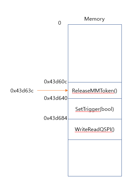 ReleaseMMToken() 이라는 함수가 0x43d60c 부터 시작하고, SetTrigger(bool) 이라는 함수가 0x43d640 부터 시작합니다. 그렇기 때문에 0x43d60c 는 ReleaseMMToken() 이라는 것을 알 수 있습니다.