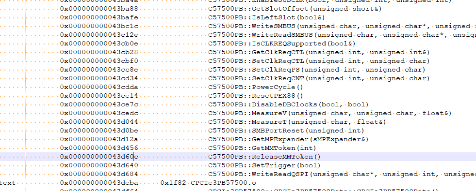 ReleaseMMToken() 이라는 함수가 0x43d60c 부터 시작하고, SetTrigger(bool) 이라는 함수가 0x43d640 부터 시작합니다. 그렇기 때문에 0x43d60c 는 ReleaseMMToken() 이라는 것을 알 수 있습니다.