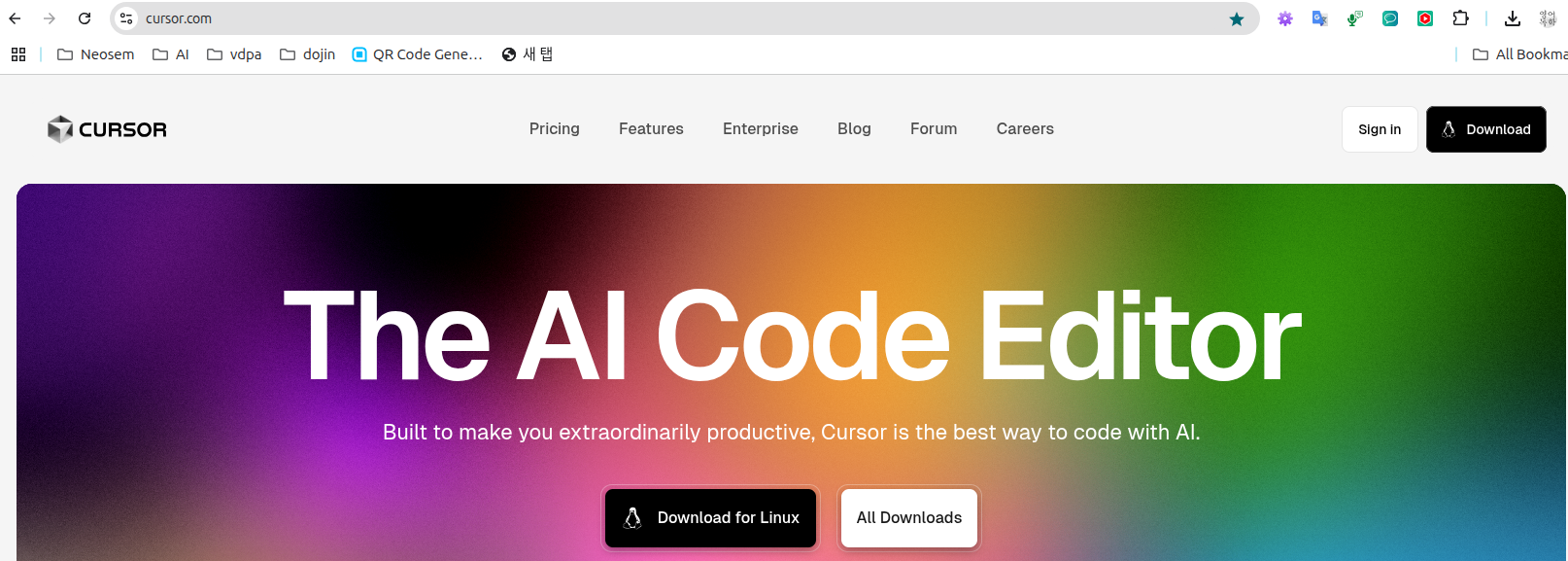 cursor.com 으로 가서 "Download for Linux" 클릭합니다. "Cursor-1.0.0-x86_64.AppImage" 파일이 다운로드 합니다. 터미널을 엽니다 (Ctrl+Alt+T).cd 명령어를 사용하여 AppImage 파일이 있는 디렉토리로 이동합니다. (예: cd ~/Downloads)다음 명령어를 사용하여 실행 권한을 부여합니다.chmod +x Cursor-1.0.0-x86_64.AppImage AppImage 파일이 있는 디렉토리에서 다음 명령어를 실행합니다../Cursor-1.0.0-x86_64.AppImage 다음과 같이 error 발생 ben@ben-Aspire-E5-575G:~/Downloads$ ./Cursor-1.0.0-x86_64.AppImage dlopen()..